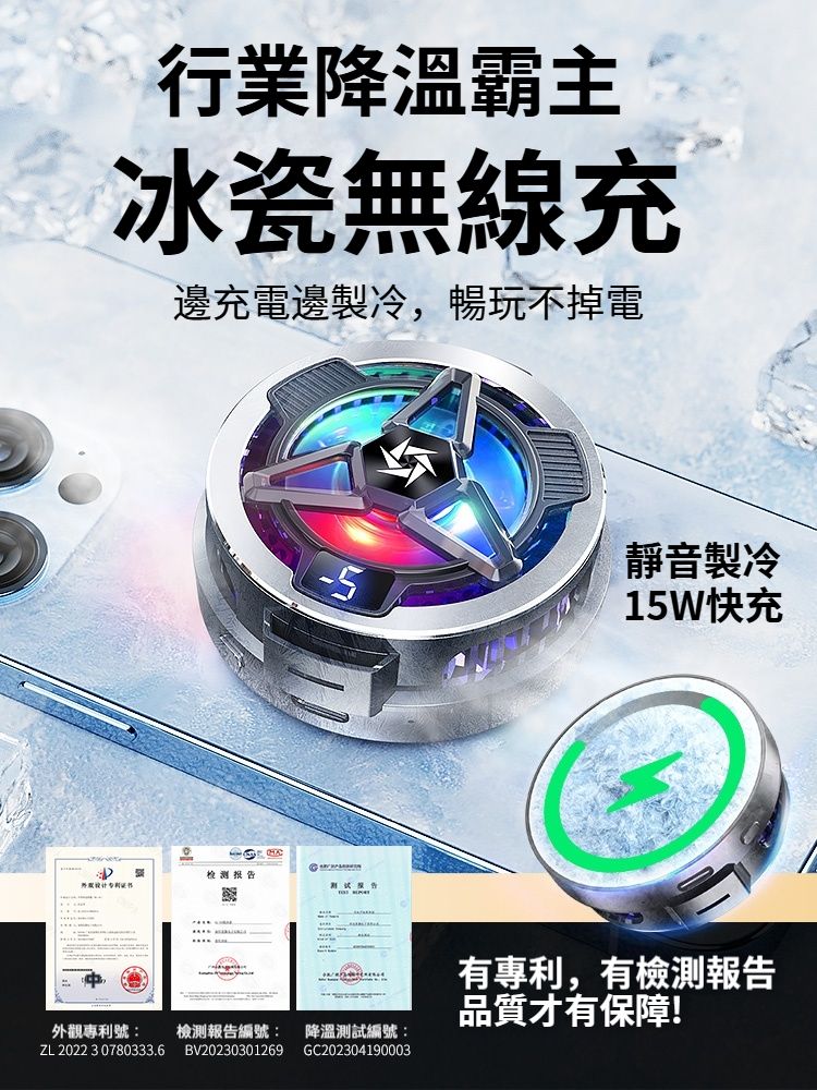 5️⃣ 手機無線磁吸風扇散熱器 | 15W 磁吸無線充電 | 蘋果與安卓廣泛兼容 | 靜音 | ⭐️⭐️⭐️⭐️ |